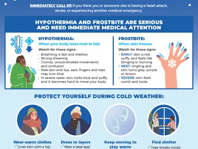 - dress warmly and cover exposed skin — frostbite can develop within minutes, especially with wind chill