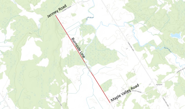 Burnside Line between Maple Valley Road to Jermey Road is closed due to flooding, effective immediately until further notice. Detour is via Carlyon Line.