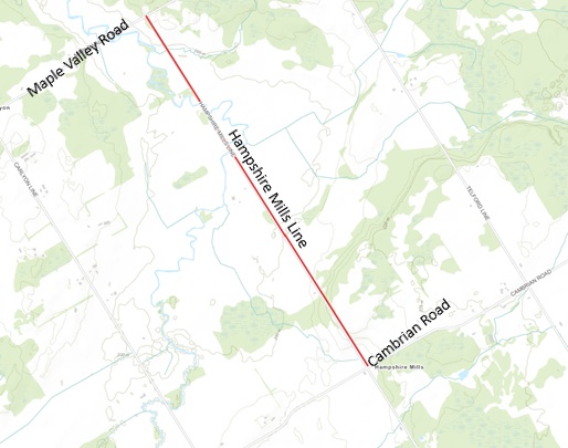 Hampshire Mills Line between Cambrian Road to Maple Valley Road has been closed due to flooding. This closure is effective immediately until further notice.