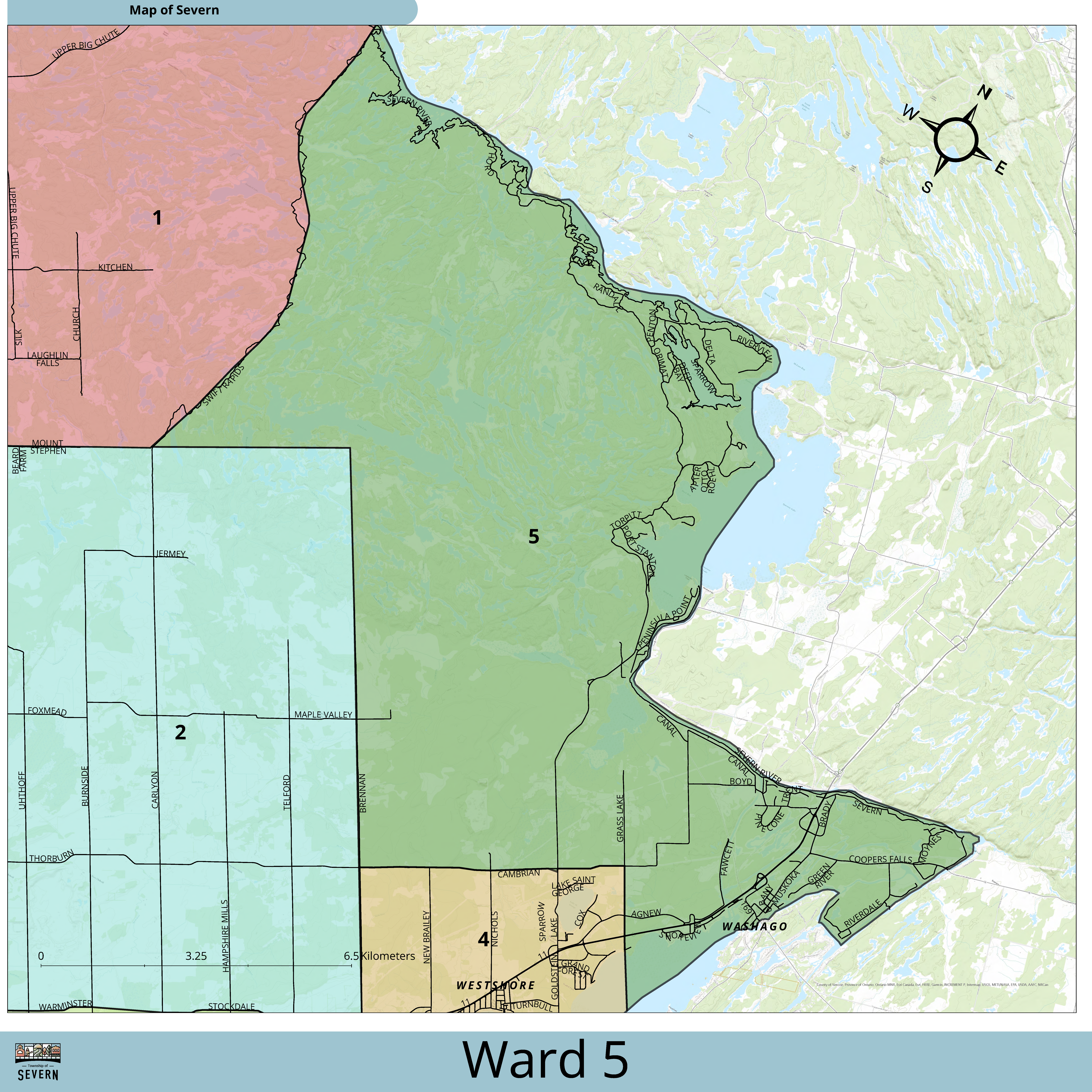 The municipality is divided into five electoral wards with representation on Council. The population of Severn is 14,576 (Statistics Canada, 2021) and the total size of the Township is 523.06 square kilometres. Based on 2022 property assessments there are 9,411 households in Severn.